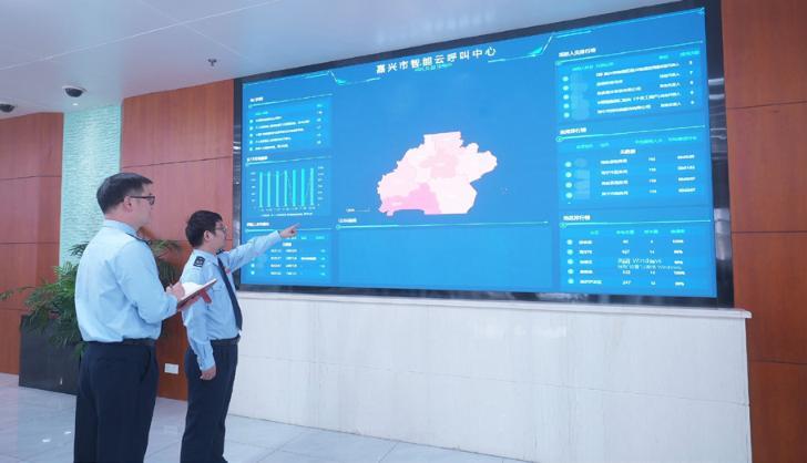 国家税务总局嘉兴市税务局党委纪检组干部对智慧监督数据进行建模分析 潘春潇 摄