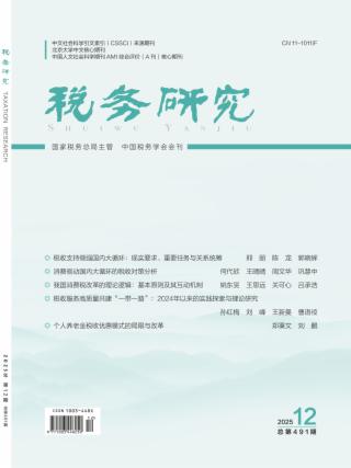 2025年 第12期 专题策划 税收支持做强国内大循环:现实要求、重要任务与关系统筹* 邢丽 陈龙 郭晓辉 消费驱动国内大循环的税收对策分析* 何代欣 王晴晴 周文华 巩慧中 税收赋能国内大循环:作用机理、现实挑战与路径优化* 张家楠 孙丝雨 税制改革 我国消费税改革的理论逻辑:基本原则及其互动机制* 姚东旻 王思远 关可心 吕承浩 我国消费税改革的主要问题与政策建议* 刘书明 贺慧 健康保护视角下的消费税制度改革研究* 李菁菁 徐浩凯 郭思妤 环球税收 税收服务高质量共建“一带一路”:2024年以来的实践探索与理论研究 孙红梅 刘峰 王新曼 曹语祾 公益慈善捐赠税收优惠政策:部分发达国家实践与我国优化路径* 韩秀兰 窦姝云 张楠 研究探索 个人养老金税收优惠模式的局限与改革* 郑秉文 刘鹏 税收政策赋能产业梯度有序转移的作用机制与优化路径* 郭月梅 曹宁宁 王颂扬 环境保护税和城市绿色全要素生产率关系的实证研究* ——来自中国280个城市的证据 吴静 仲深 周志承 我国REITs税收制度:优化空间与完善策略 方净植 税收管理 我国税收征管数字化转型的主要成就、现实难题与优化路径* 黄潇 张小芳 碳交易税务处理与会计处理差异问题研析 林溪发 调查研究 嵌入式税收征管的路径探索* ——基于国家税务总局广州市税务局的征管实践 国家税务总局广州市税务局嵌入式税收征管课题组 跨境电商出口企业相关税收政策完善思考* ——基于深圳市跨境电商的调查 陈静 葛玉御 案例分析 论合伙企业作为持股平台转让限售股的税法适用 ——以阳某诉请变更应税项目案为例 李柯奇 青税经纬 促进耐心资本发展的税收政策体系优化研究 陈雏音 税收政策赋能自主可控的现代化制造业体系面临的挑战与对策* 杨李娟 魏文萱 熊凌云